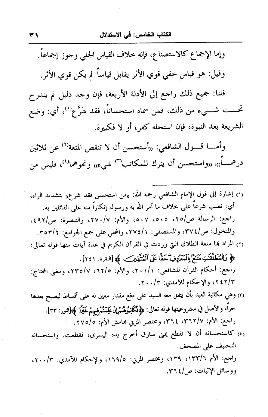 راجع: أحكام القرآن للشافعي: ١/ ٢٠١، والأم: ٥/ ٦٢، ٧/ ٢٣٥، ومغني المحتاج: ٣/ ٢٤٢، والإحكام للآمدي: ٣/ ٢٠٠.