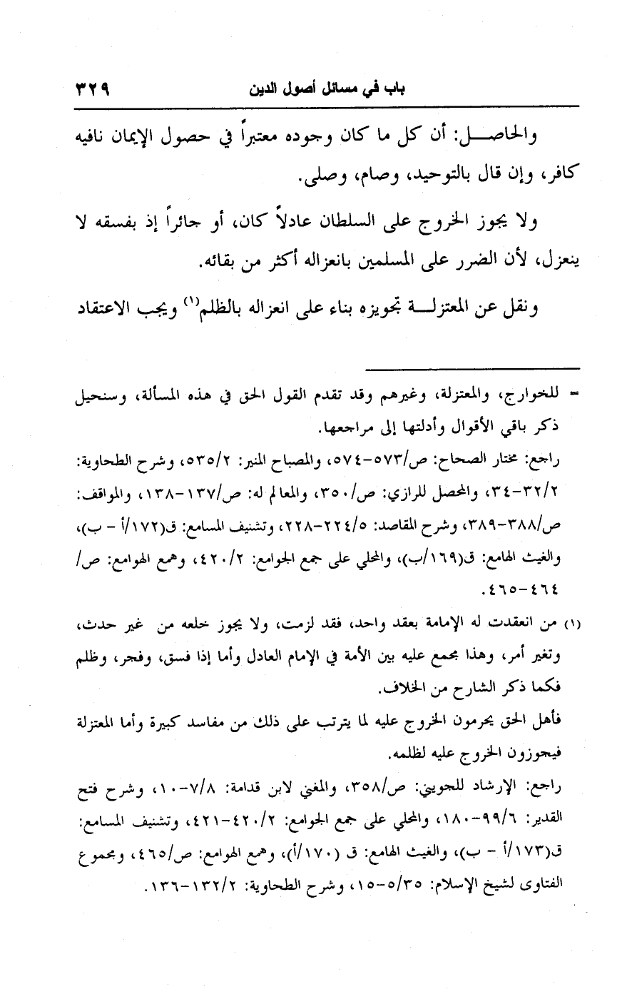 راجع: الإرشاد للجويني: ص/ ٣٥٨، والمغني لابن قدامة: ٨/ ٧ - ١٠، وشرح فتح القدير: ٦/ ٩٩ - ١٨٠، والمحلي على جمع الجوامع: ٢/ ٤٢٠ - ٤٢١، وتشنيف المسامع: ق (١٧٣/ أ - ب)، والغيث الهامع: ق (١٧٠/ أ)، وهمع الهوامع: ص/ ٤٦٥، ومجموع الفتاوى لشيخ الإسلام: ٣٥/ ٥ - ١٥، وشرح الطحاوية: ٢/ ١٣٢ - ١٣٦.