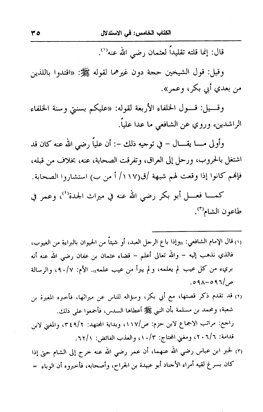 (١) قال الإمام الشافعي: "وإذا باع الرجل العبد، أو شيئًا من الحيوان بالبراءة من العيوب، فالذي نذهب إليه -واللَّه تعالى أعلم- قضاء عثمان بن عفان رضي اللَّه عنه أنه بريء من كل عيب لم يعلمه، ولم يبرأ من عيب علمه". الأم: ٧/ ٩٠، والرسالة ص/ ٥٩٦ - ٥٩٨.
