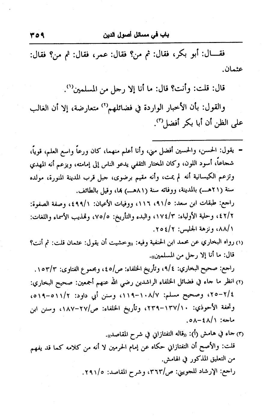 راجع: صحيح البخاري: ٤/ ٩، وتأريخ الخلفاء: ص/ ٤٥، ومجموع الفتاوى: ٣/ ١٥٣.