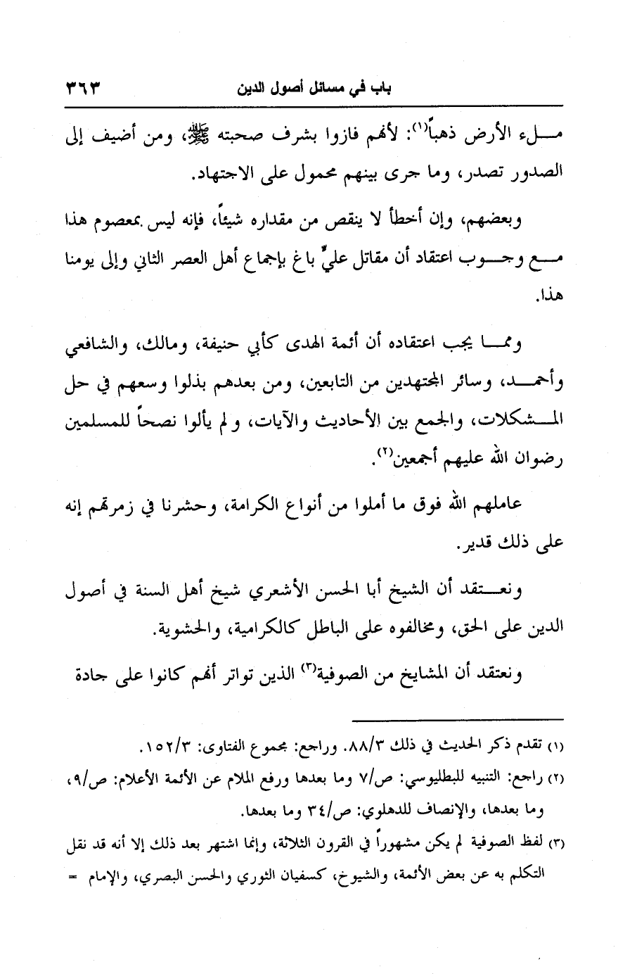 ونعتقد أن المشايخ من الصوفية (٣) الذين تواتر أنهم كانوا على جادة