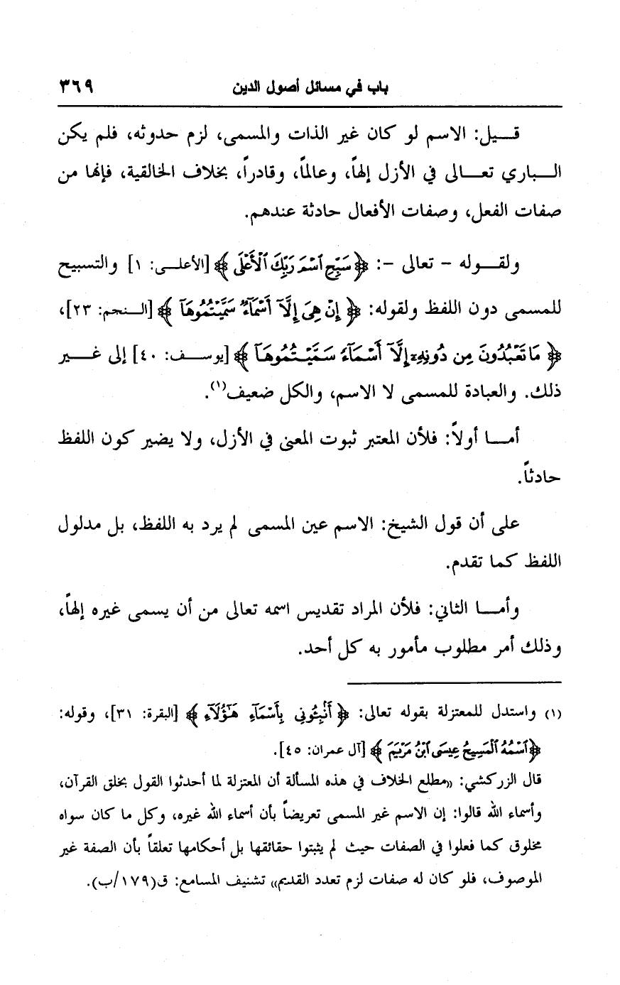 (١) واستدل للمعتزلة بقوله تعالى: {أَنْبِئُونِي بِأَسْمَاءِ هَؤُلَاءِ} [البقرة: ٣١]، وقوله: {اسْمُهُ الْمَسِيحُ عِيسَى ابْنُ مَرْيَمَ} [آل عمران: ٤٥].