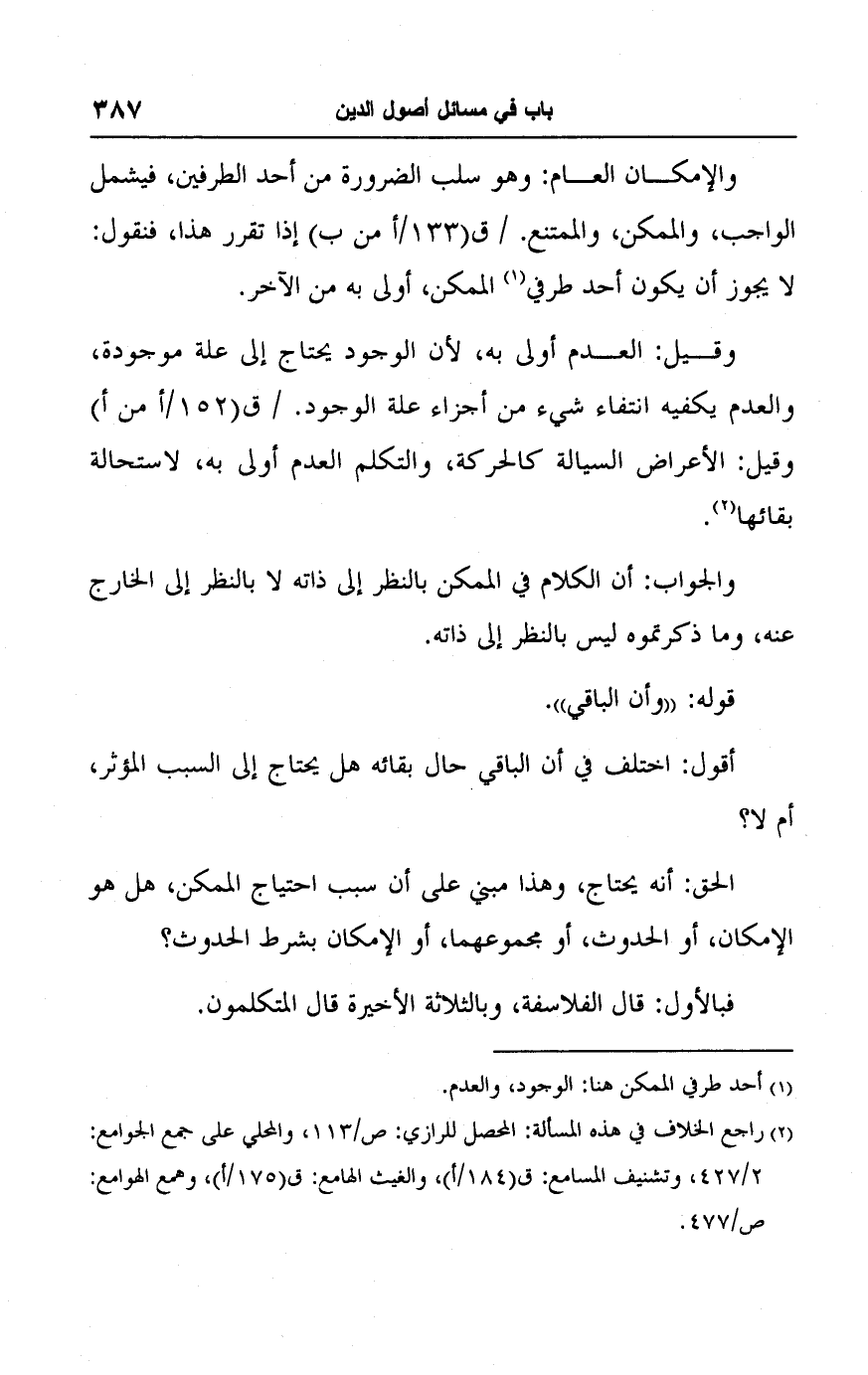 (١) أحد طرفي الممكن هنا: الوجود، والعدم.