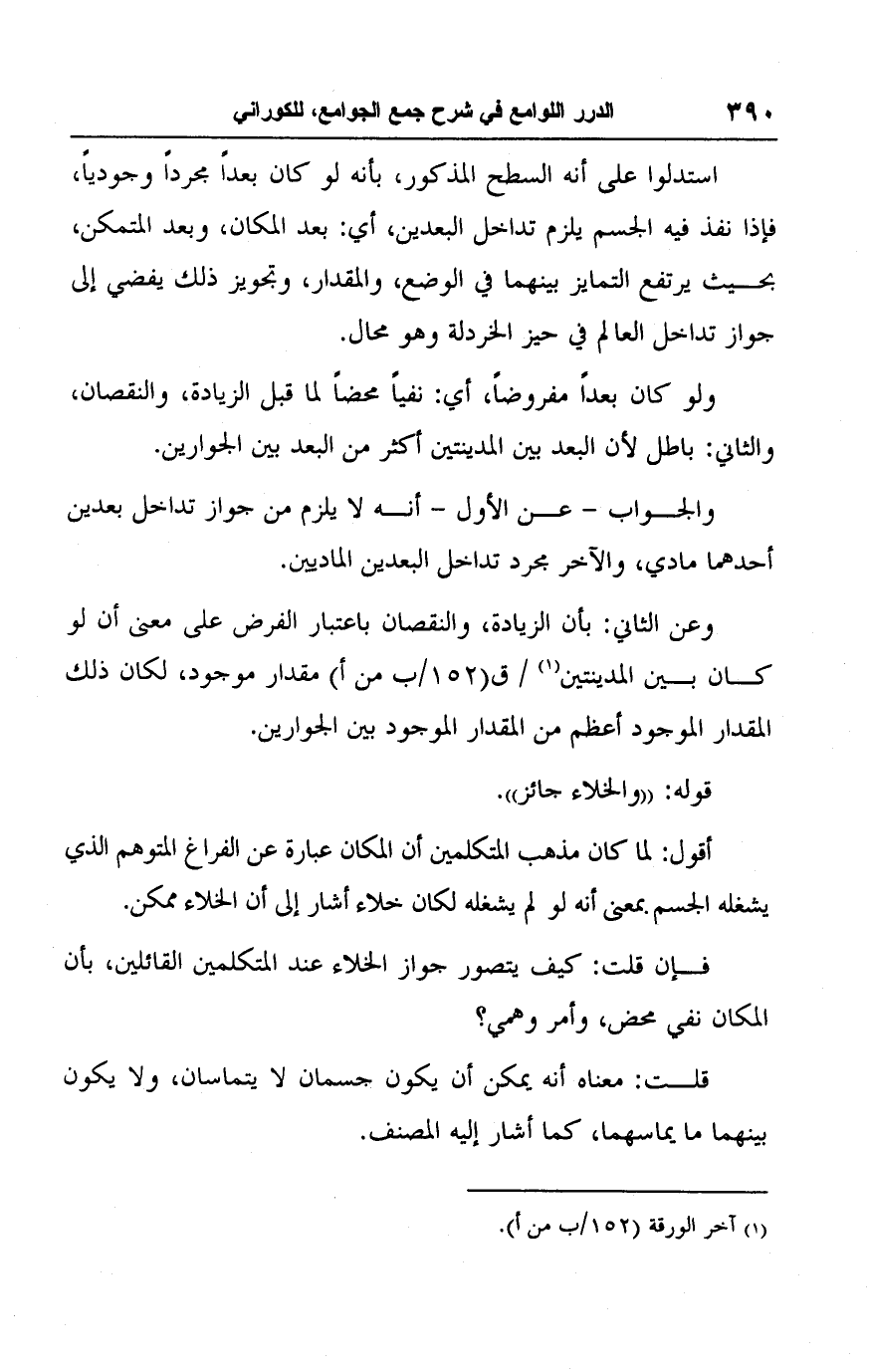 فإن قلت: كيف يتصور جواز الخلاء عند المتكلمين القائلين، بأن المكان نفي محض، وأمر وهمي؟