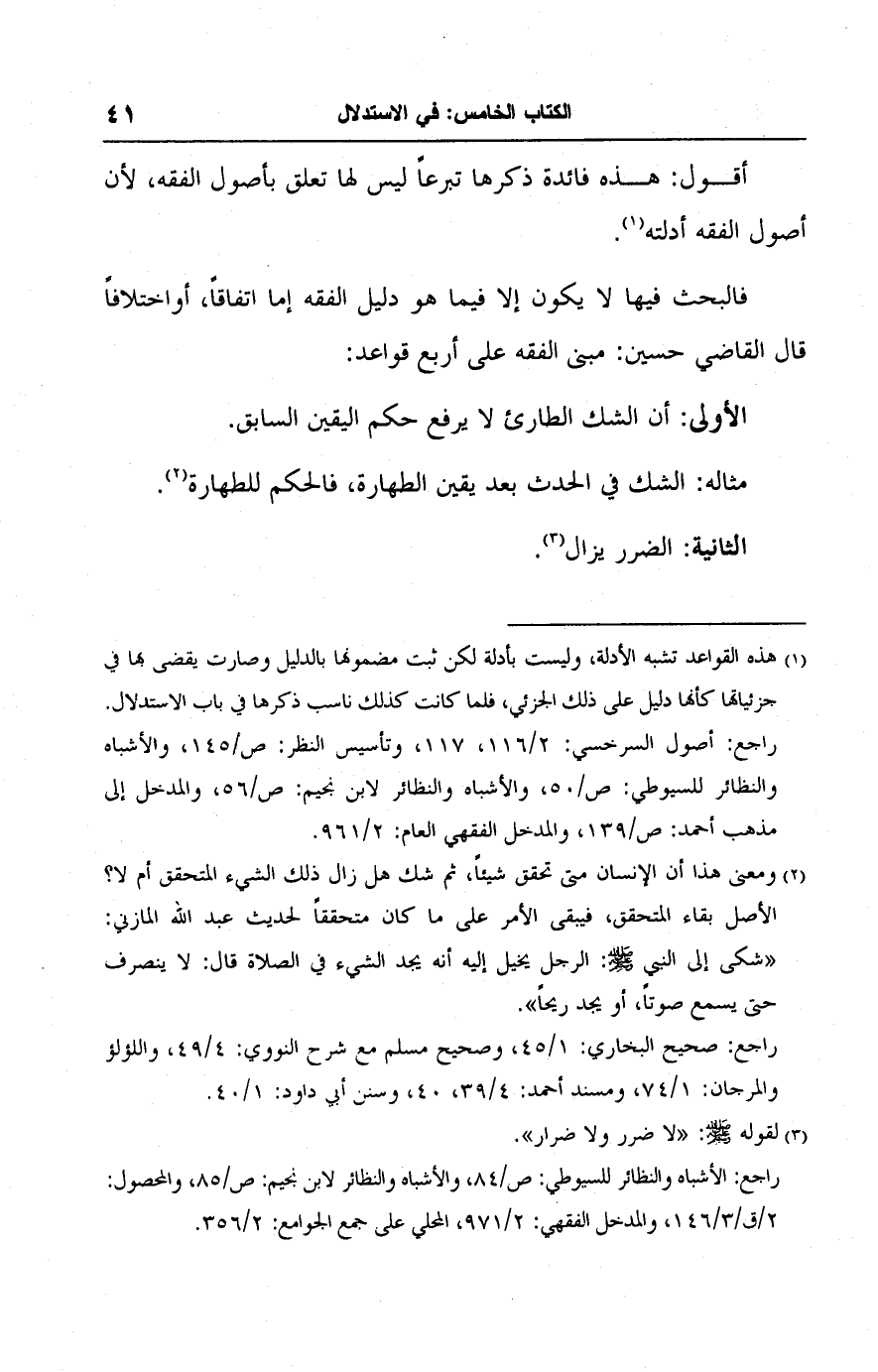 راجع: الأشباه والنظائر للسيوطي: ص/ ٨٤، والأشباه والنظائر لابن نجيم: ص/ ٨٥، والمحصول: ٢/ ق/ ٣/ ١٤٦، والمدخل الفقهي: ٢/ ٩٧١، المحلي على جمع الجوامع: ٢/ ٣٥٦.