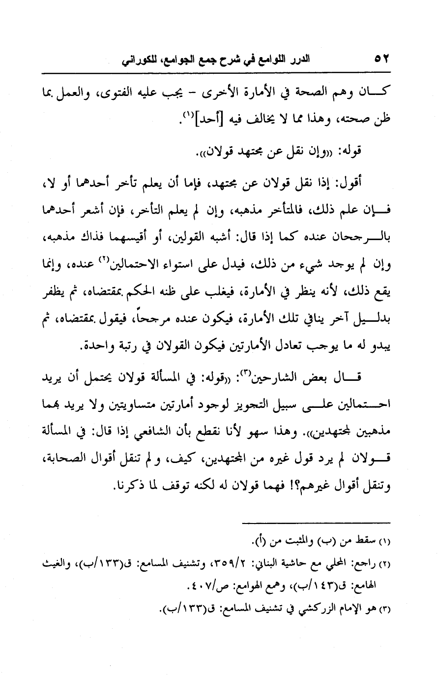 (٢) راجع: المحلي مع حاشية البناني: ٢/ ٣٥٩، وتشنيف المسامع: ق (١٣٣/ ب)، والغيث الهامع: ق (١٤٣/ ب)، وهمع الهوامع: ص/ ٤٠٧.