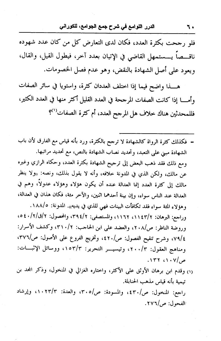 = فكذلك كثرة الرواة كالشهادة لا ترجح بالكثرة، ورد بأنه قياس مع الفارق لأن باب الشهادة مبني على التعبد، وتحديد نصاب الشهادة بالنص، مع تحديد مراتبها.