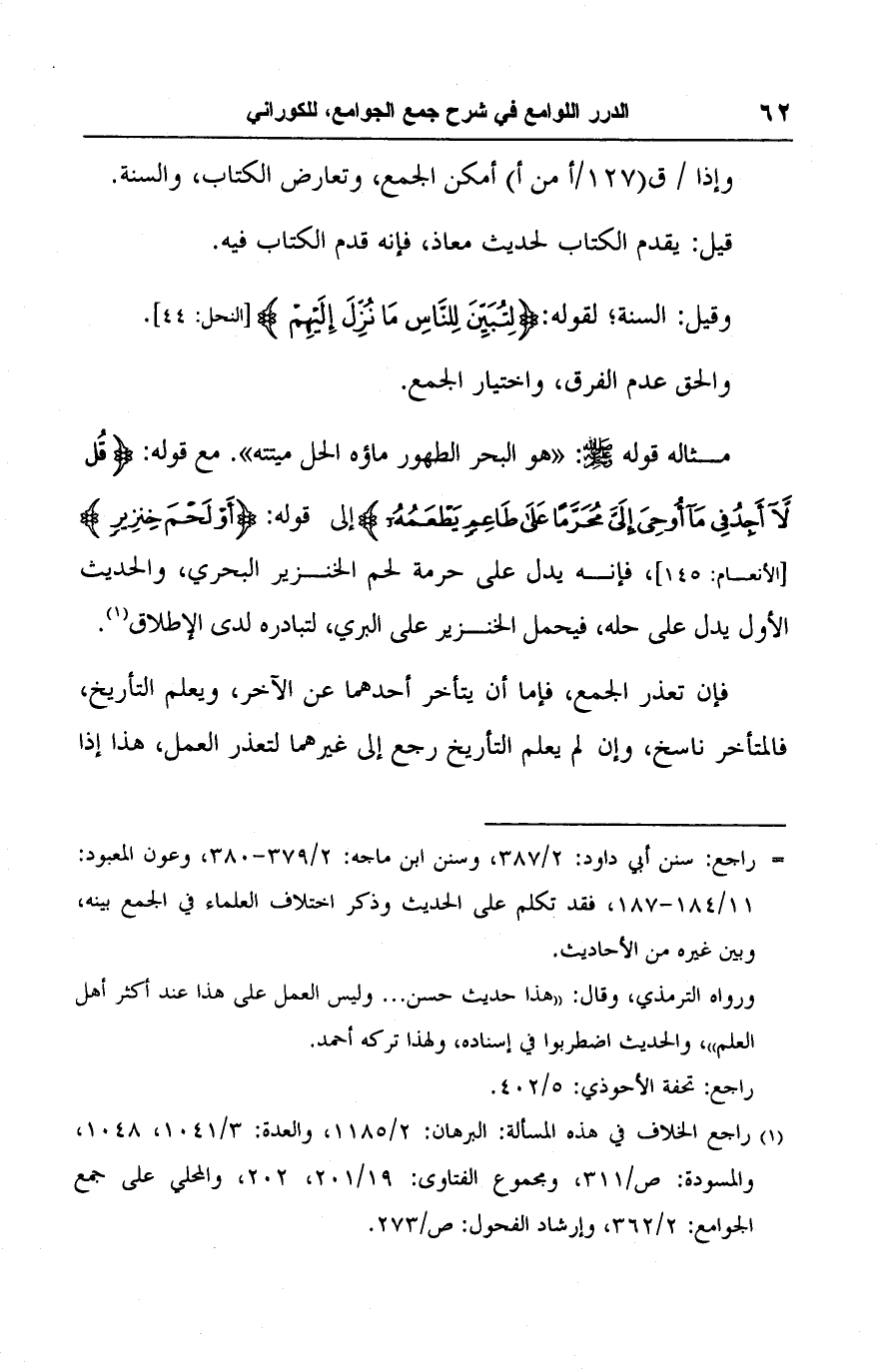 وإذا أمكن الجمع، وتعارض الكتاب، والسنة.