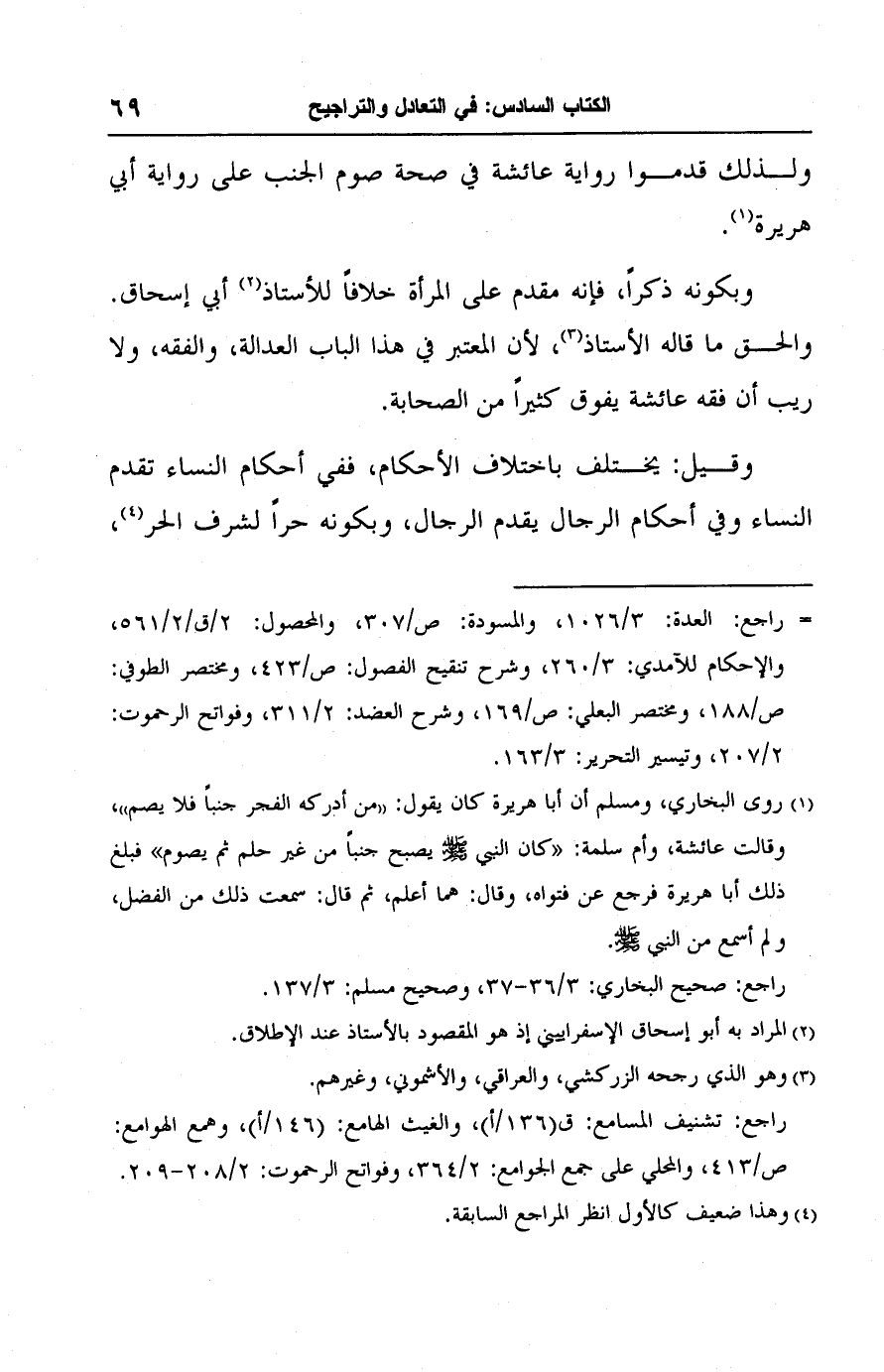 ولذلك قدموا رواية عائشة في صحة صوم الجنب على رواية أبي هريرة (١).