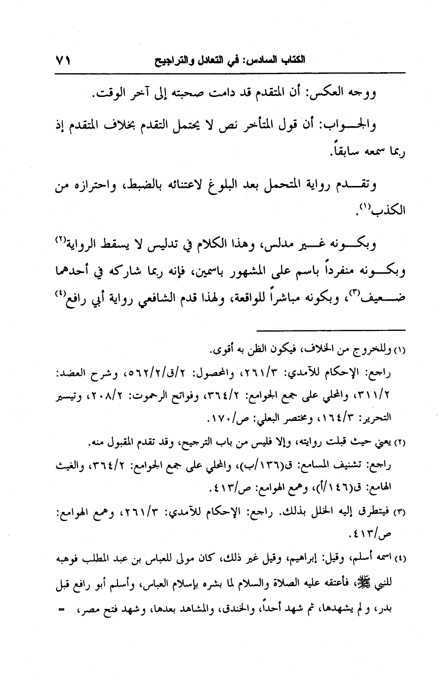 راجع: الأحكام للآمدي: ٣/ ٢٦١، والمحصول: ٢/ ق/ ٢/ ٥٦٢، وشرح العضد: ٢/ ٣١١، والمحلي على جمع الجوامع: ٢/ ٣٦٤، وفواتح الرحموت: ٢/ ٢٠٨، وتيسير التحرير: ٣/ ١٦٤، ومختصر البعلي: ص/ ١٧٠.