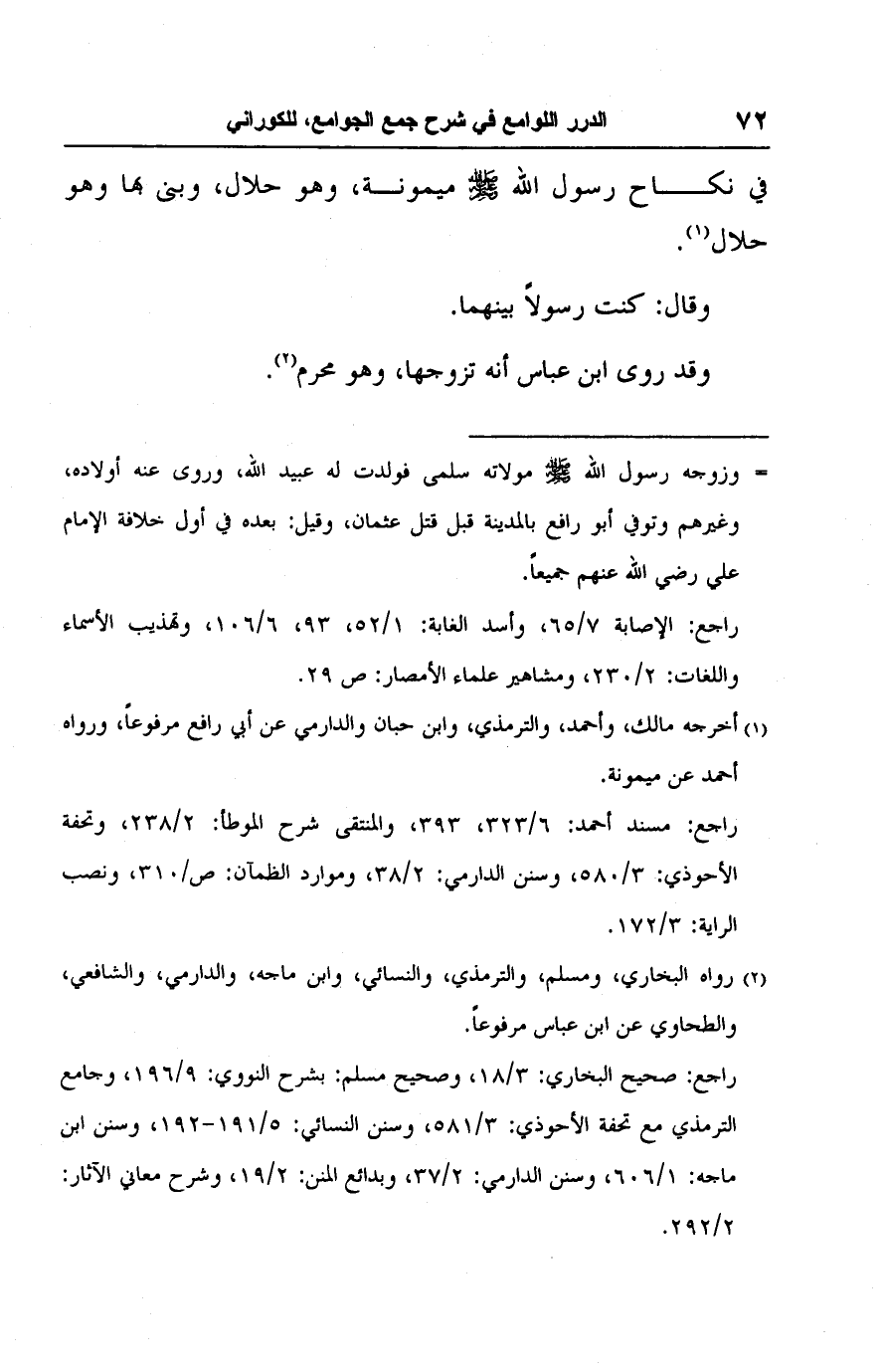 راجع: صحيح البخاري: ٣/ ١٨، وصحيح مسلم: بشرح النووي: ٩/ ١٩٦، وجامع الترمذي مع تحفة الأحوذي: ٣/ ٥٨١، وسنن النسائي: ٥/ ١٩١ - ١٩٢، وسنن ابن ماجه: ١/ ٦٠٦، وسنن الدارمي: ٢/ ٣٧، وبدائع المنن: ٢/ ١٩، وشرح معاني الآثار: ٢/ ٢٩٢.