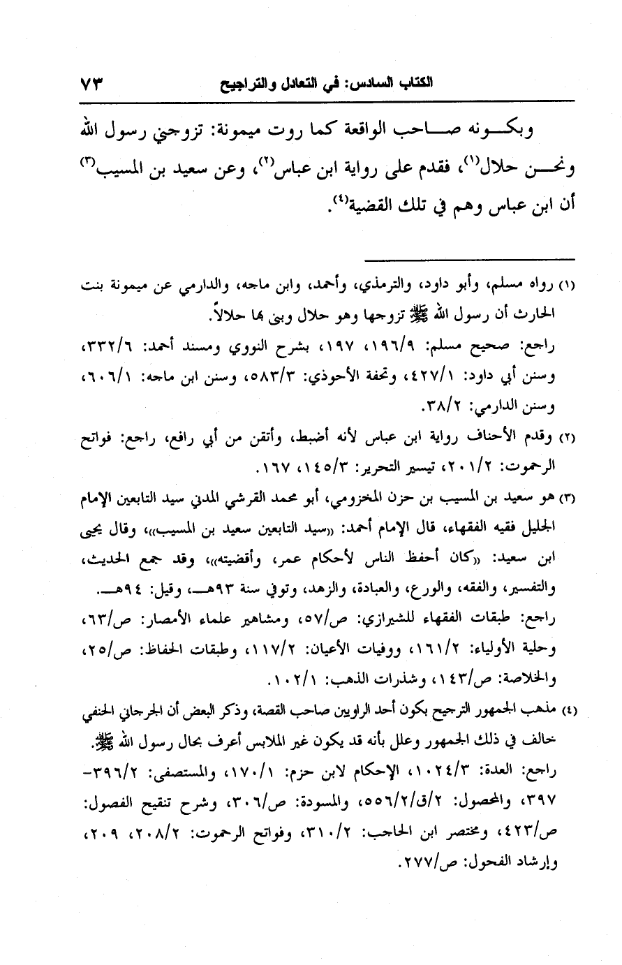 (٢) وقدم الأحناف رواية ابن عباس لأنه أضبط، وأتقن من أبي رافع، راجع: فواتح الرحموت: ٢/ ٢٠١، تيسير التحرير: ٣/ ١٤٥، ١٦٧.