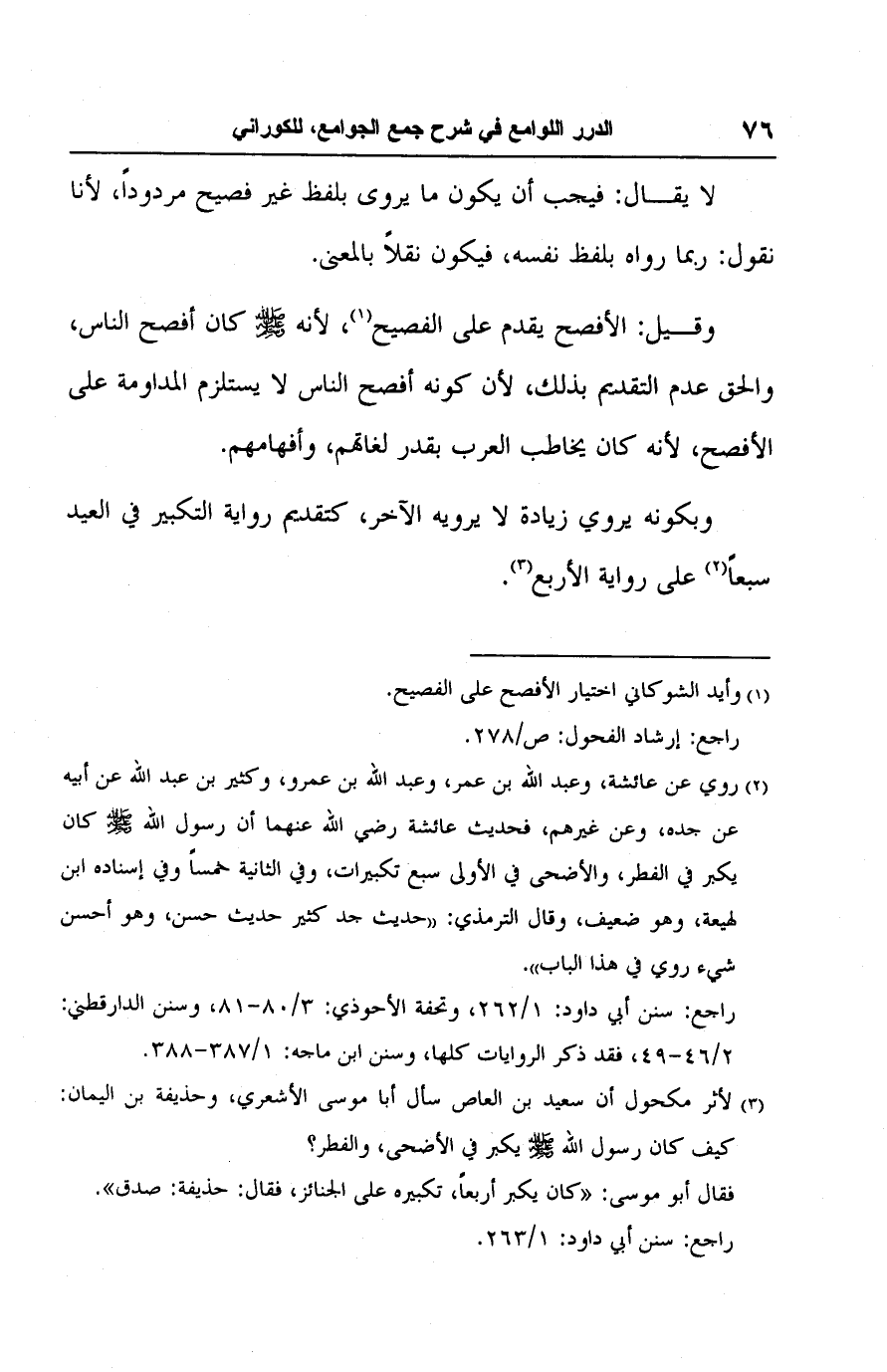 (١) وأيد الشوكاني اختيار الأفصح على الفصيح.