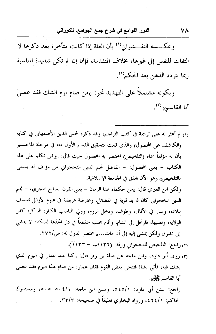 (٢) راجع: التلخيص للنخجواني ورقة: (١٣٢/ ب - ١٣٣/ أ).