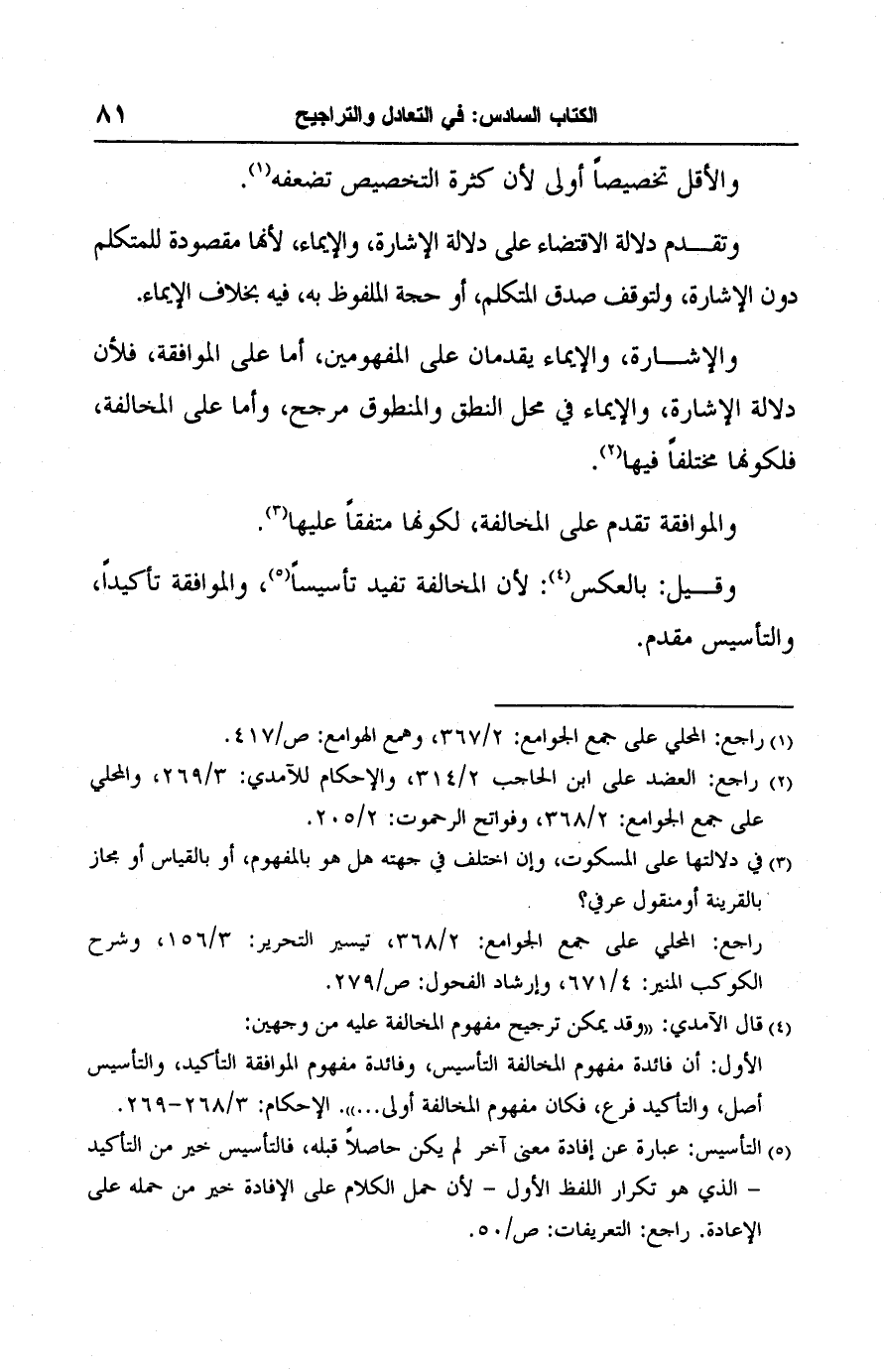 (١) راجع: المحلي على جمع الجوامع: ٢/ ٣٦٧، وهمع الهوامع: ص/ ٤١٧.