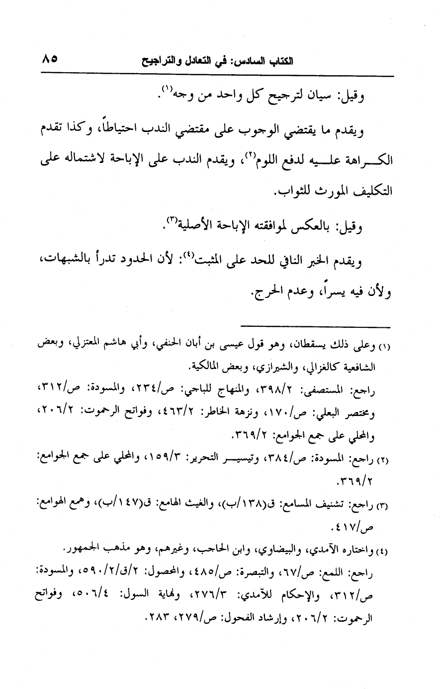 راجع: المستصفى: ٢/ ٣٩٨، والمنهاج للباجي: ص/ ٢٣٤، والمسودة: ص/ ٣١٢، ومختصر البعلي: ص/ ١٧٠، ونزهة الخاطر: ٢/ ٤٦٣، وفواتح الرحموت: ٢/ ٢٠٦، والمحلي على جمع الجوامع: ٢/ ٣٦٩.