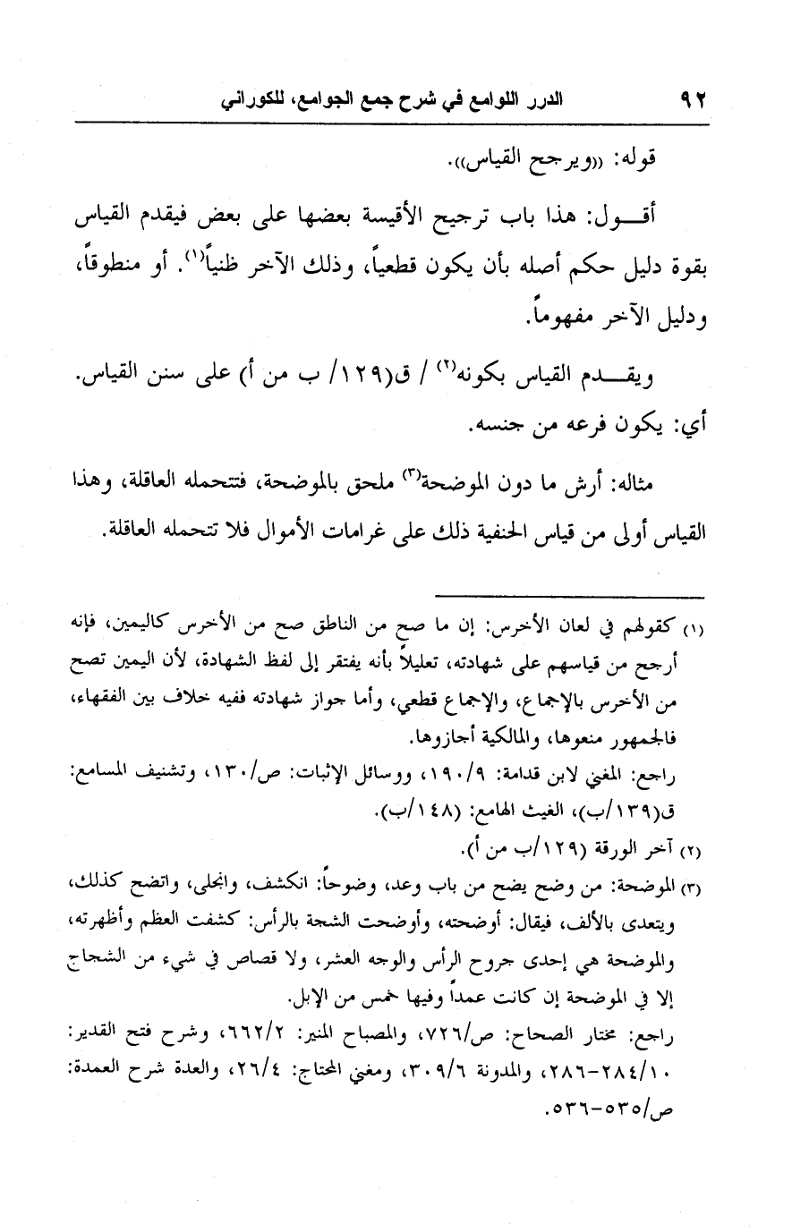 مثاله: أرش ما دون الموضحة (٣) ملحق بالوضحة، فتتحمله العاقلة، وهذا القياس أولى من قياس الحنفية ذلك على غرامات الأموال فلا تتحمله العاقلة.
