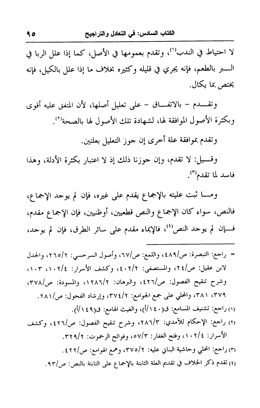 (٤) تقدم ذكر الخلاف في تقديم العلة الثابتة بالإجماع على الثابتة بالنص: ص/ ٩٣.