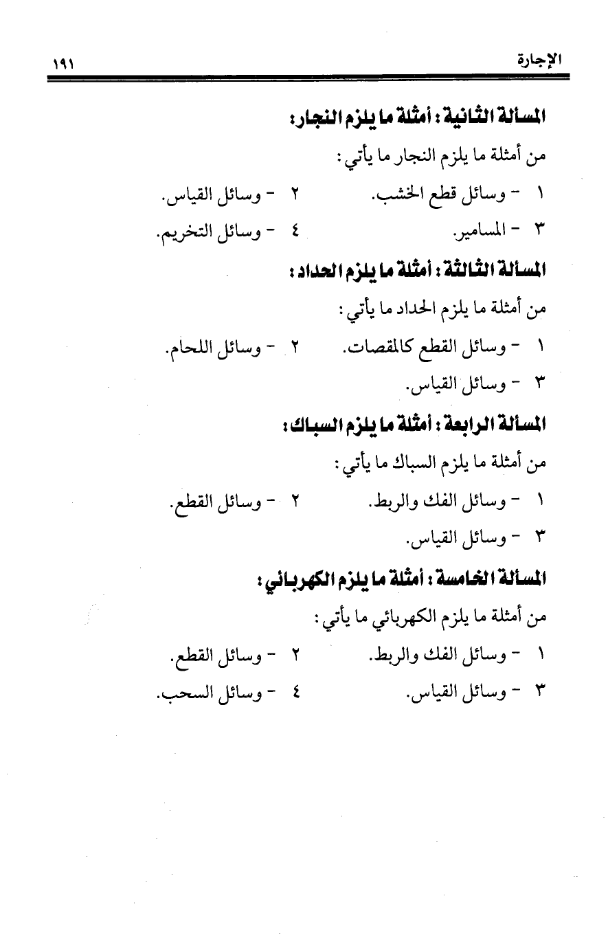 المسألة الثانية: أمثلة ما يلزم النجار: