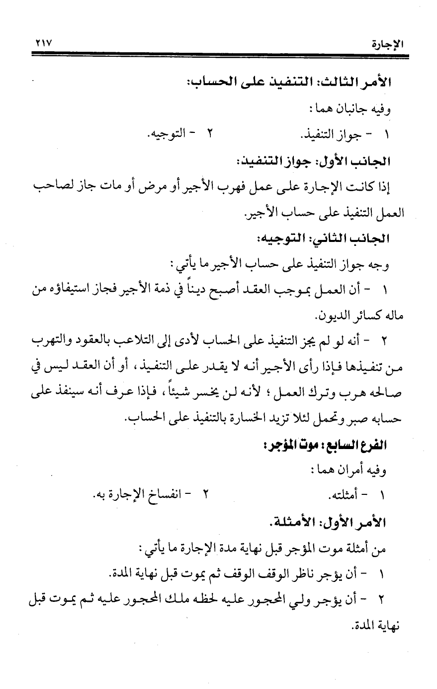 2 - أنه لو لم يجز التنفيذ على الحساب لأدى إلى التلاعب بالعقود والتهرب من تنفيذها فإذا رأى الأجير أنه لا يقدر على التنفيذ، أو أن العقد ليس في صالحه هرب وترك العمل؛ لأنه لن يخسر شيئًا، فإذا عرف أنه سينفذ على حسابه صبير وتحمل لئلا تزيد الخسارة بالتنفيذ على الحساب.