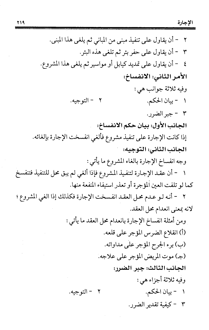 وجه انفساخ الإجارة بالغاء المشروع ما يأتي: