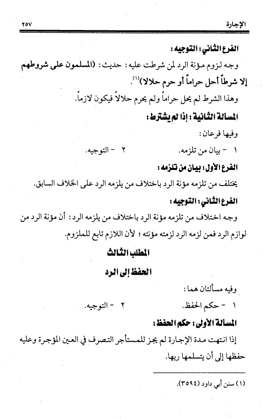 وجه لزوم مؤنة الرد لمن شرطت عليه: حديث: (المسلمون على شروطهم إلا شرطاً أحل حراماً أو حرم حلالا) (¬1).
