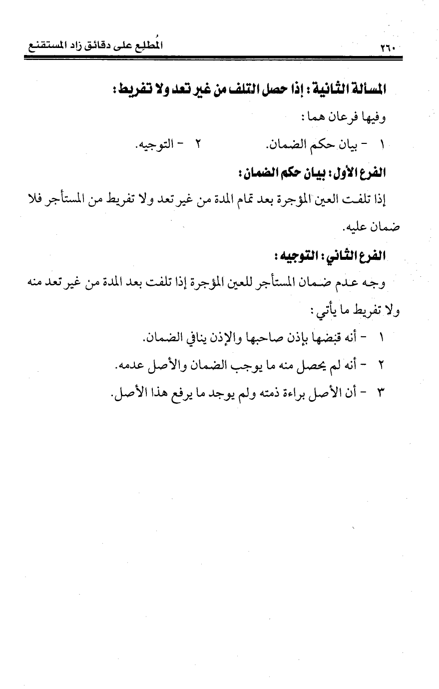 إذا تلفت العين المؤجرة بعد تمام المدة من غير تعد ولا تفريط من المستأجر فلا ضمان عليه.