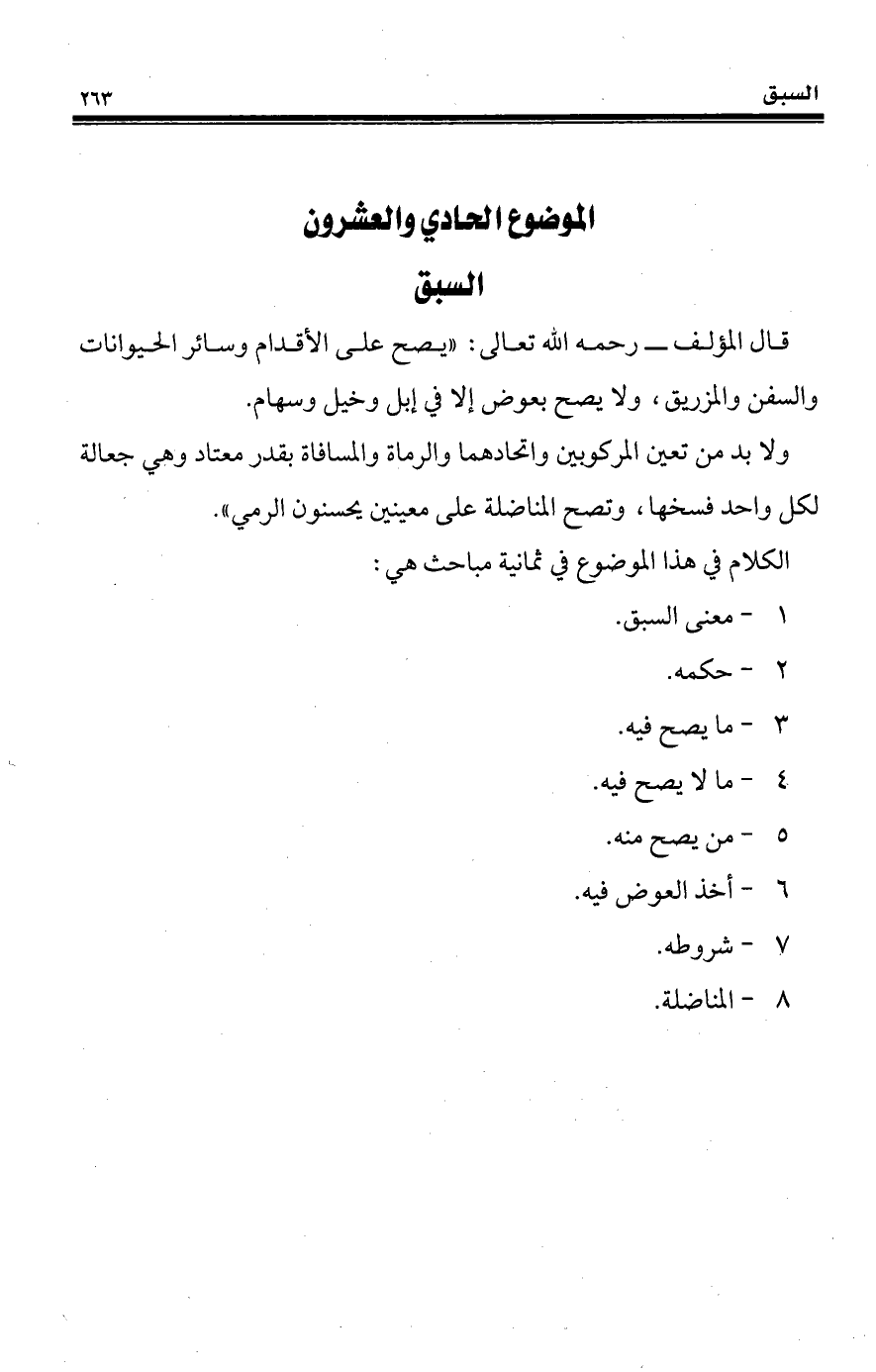 قال المؤلف - رحمه الله تعالى: "يصح على الأقدام وسائر الحيوانات والسفن والمزريق، ولا يصح بعوض إلا في إبل وخيل وسهام.