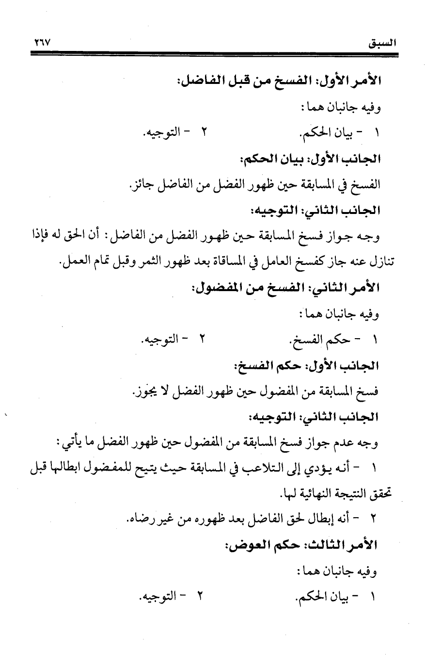 فسخ المسابقة من المفضول حين ظهور الفضل لا يجوز.