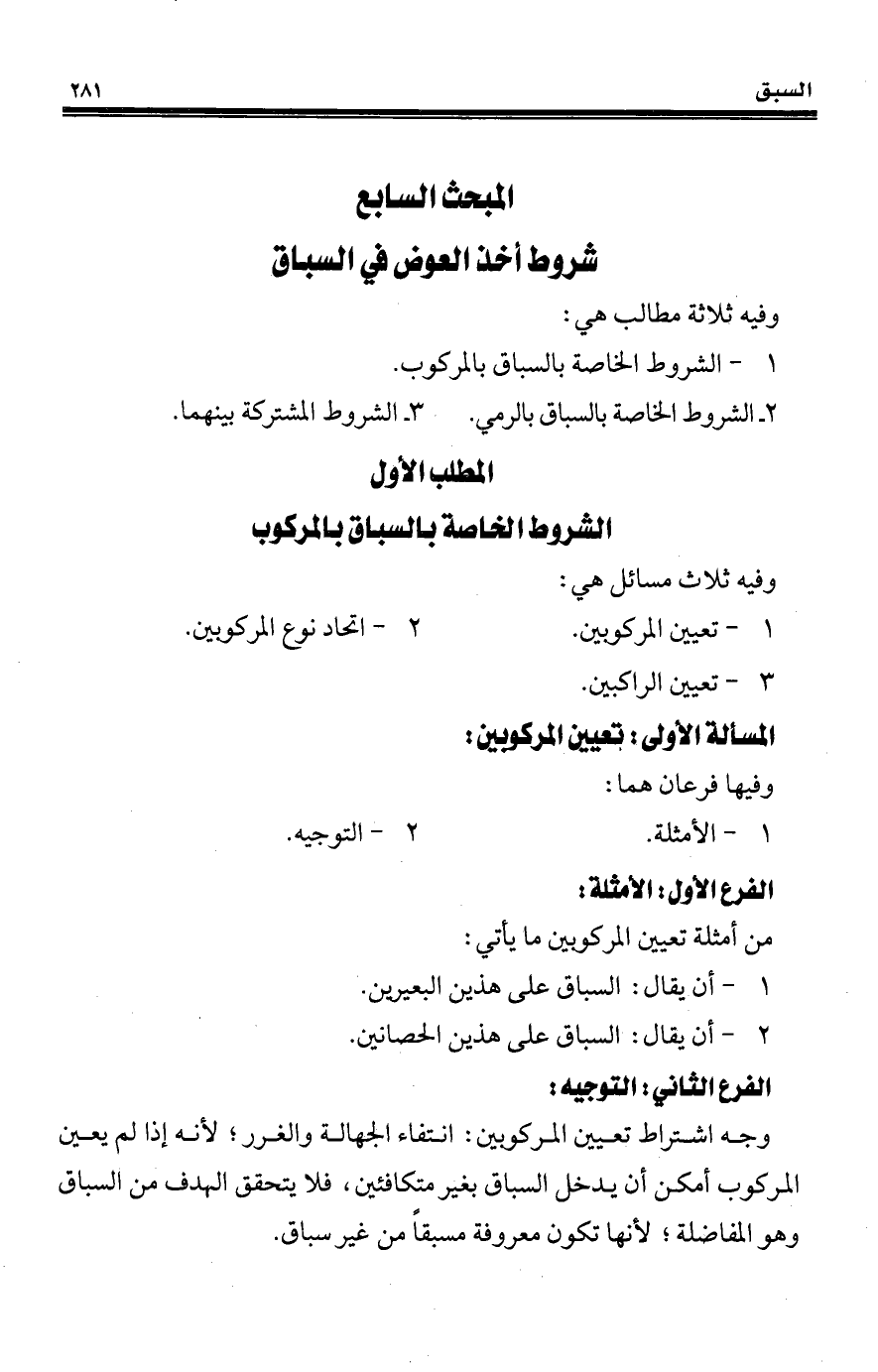 المطلب الأول الشروط الخاصة بالسباق بالمركوب