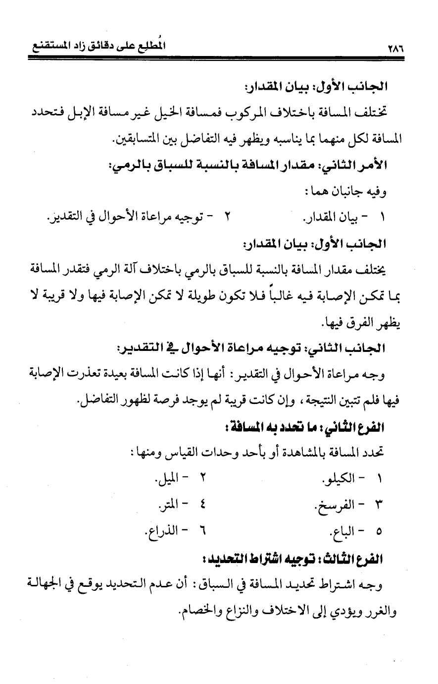 الأمر الثاني: مقدارالمسافة بالنسبة للسباق بالرمي: