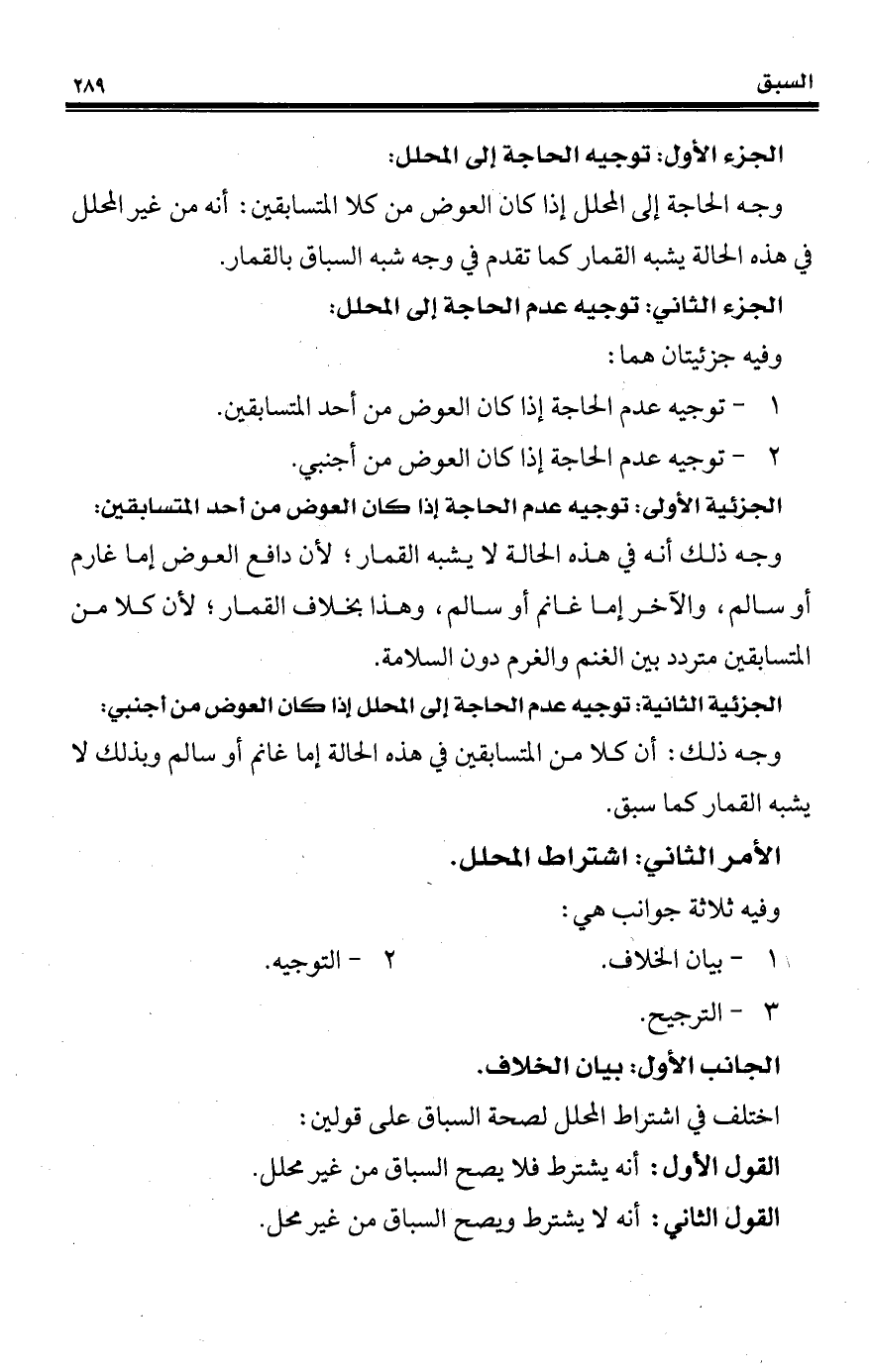 اختلف في اشتراط المحلل لصحة السباق على قولين: