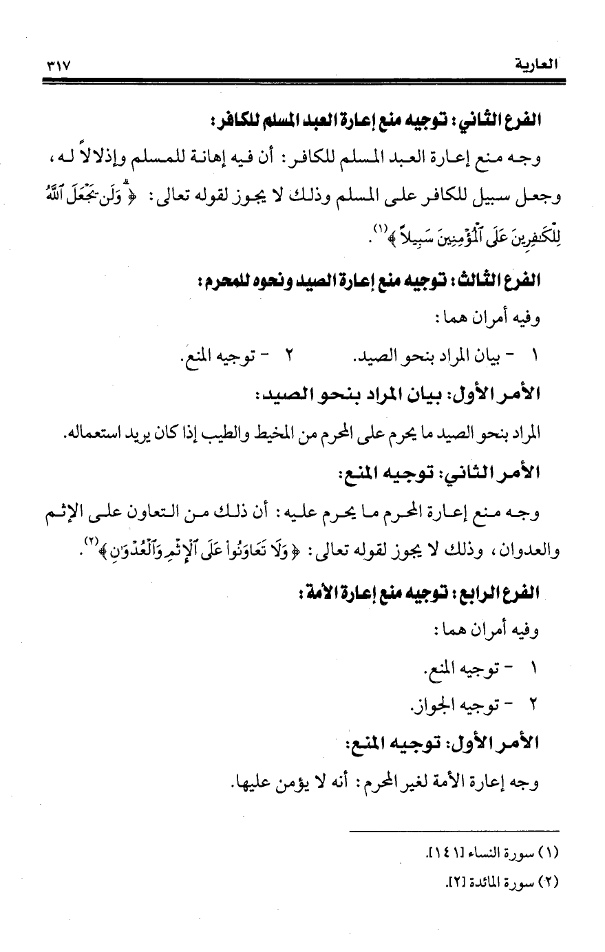 الفرع الثاني: توجيه منع إعارة العبد المسلم للكافر: