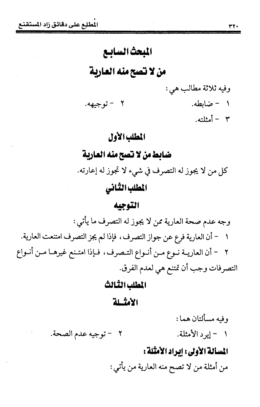 المبحث السابع من لا تصح منه العارية