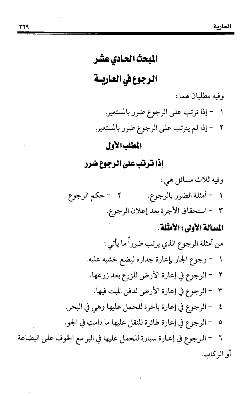 المبحث الحادي عشر الرجوع في العارية