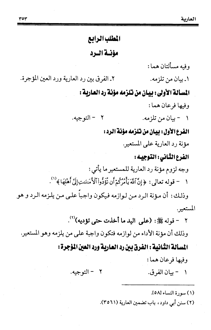 المسألة الأولى: بيان من تلزمه مؤنة رد العارية: