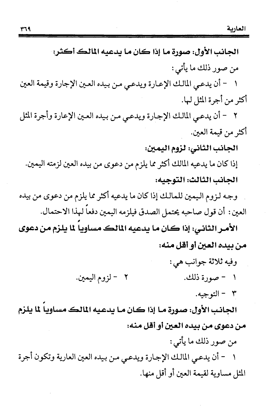 1 - أن يدعي المالك الإعارة ويدعي من بيده العين الإجارة وقيمة العين أكثر من أجرة المثل لها.