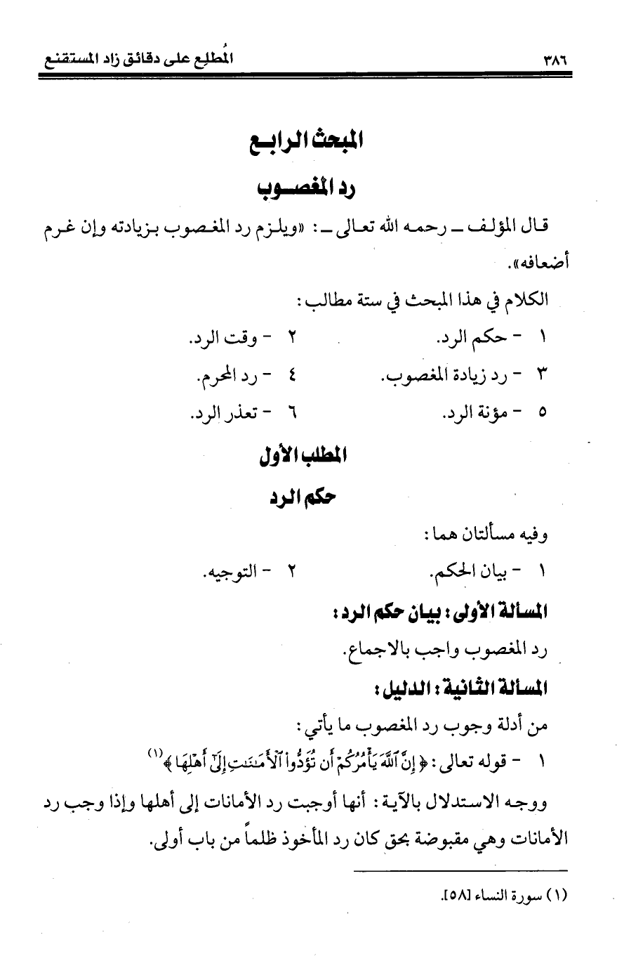 المبحث الرابع رد المغصوب