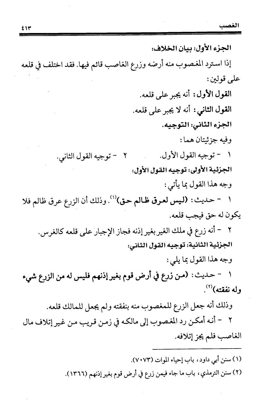 (¬2) سنن الترمذي، باب ما جاء فيمن زرع في أرض قوم بغير إذنهم (1366).