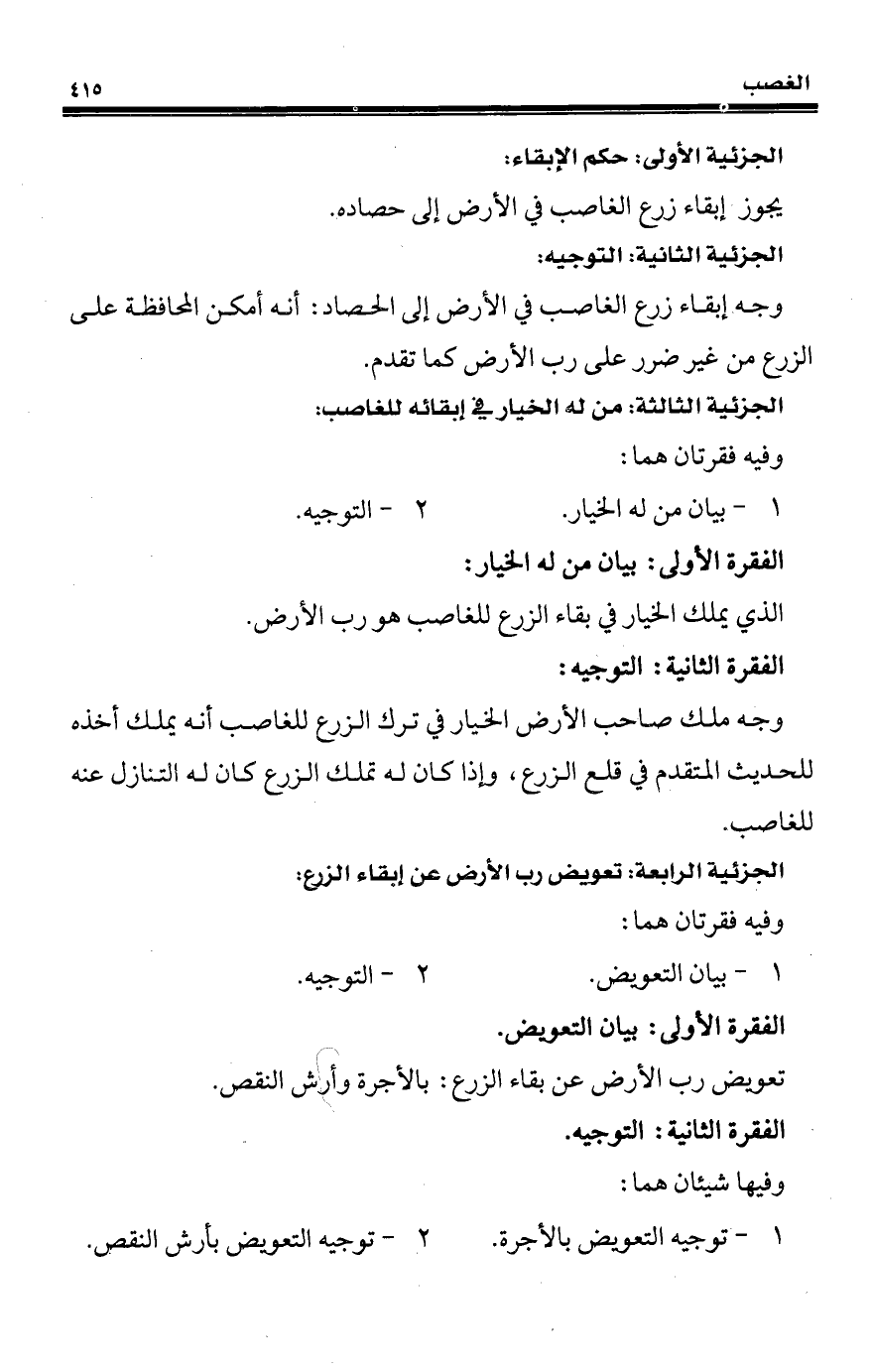 الجزئية الرابعة: تعويض رب الأرض عن إبقاء الزرع: