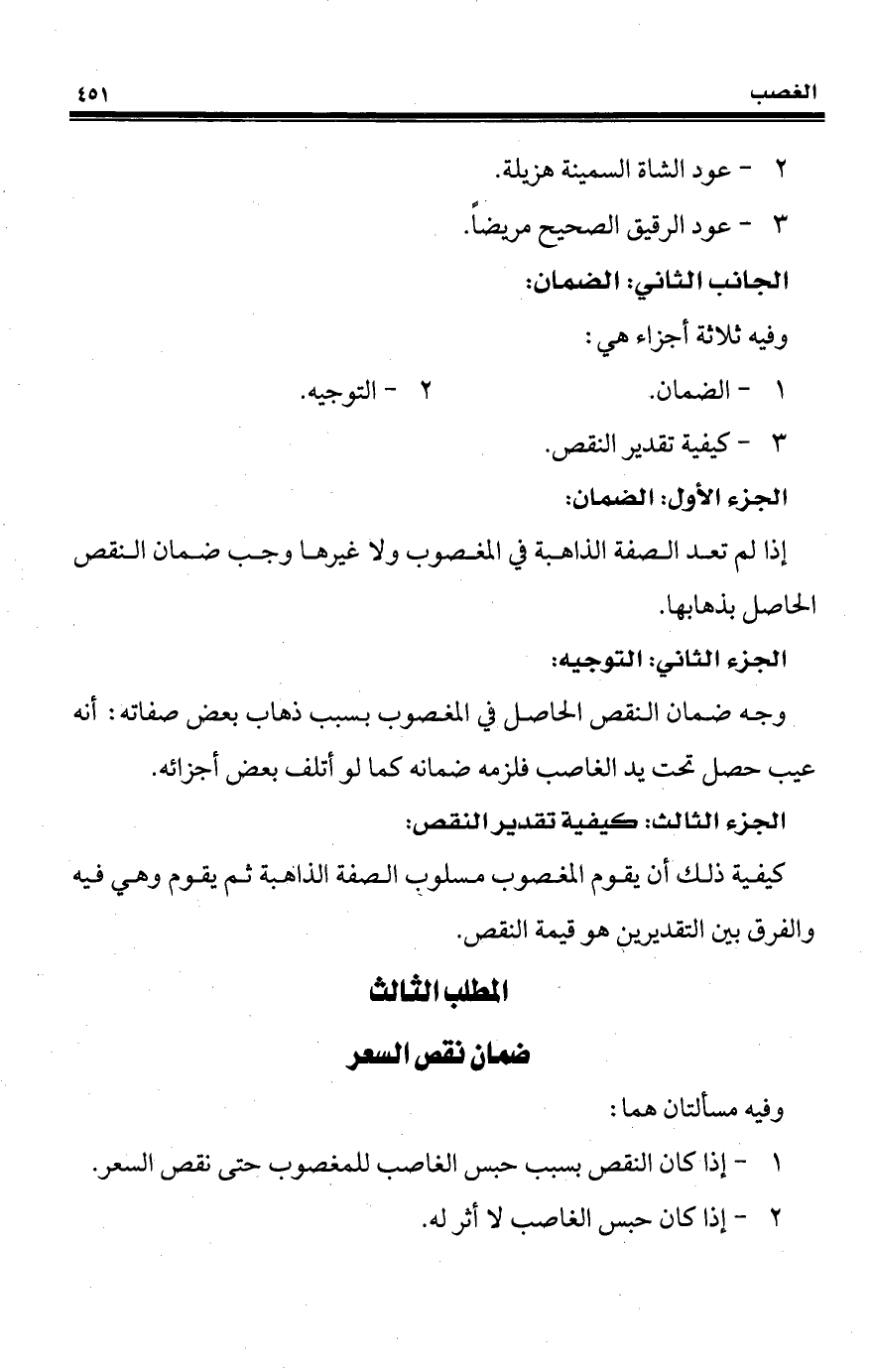 1 - إذا كان النقص بسبب حبس الغاصب للمغصوب حتى نقص السعر.