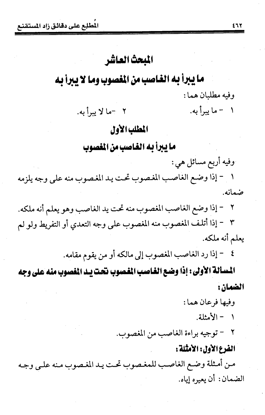 المبحث العاشر ما يبرأ به الغاصب من المغصوب وما لا يبرأ به