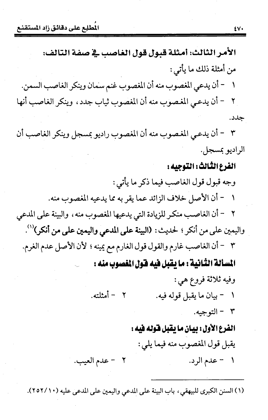 2 - أن الغاصب منكر للزيادة التي يدعيها المغصوب منه، والبينة على المدعي واليمين على من أنكر؛ لحديث: (البينة على المدعي واليمين على من أنكر) (¬1).