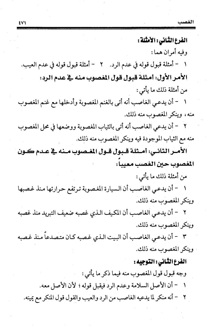 2 - أنه منكر لما يدعيه الغاصب من الرد والعيب والقول قول المنكر مع يمينه.