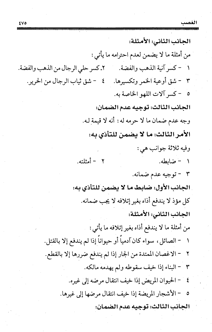 من أمثلة ما لا يضمن لعدم احترامه ما يأتي: