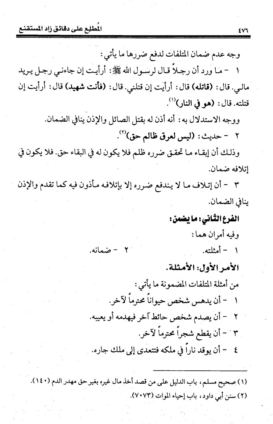 (¬1) صحيح مسلم، باب الدليل على من قصد أخذ مال غيره بغير حق مهدر الدم (140).