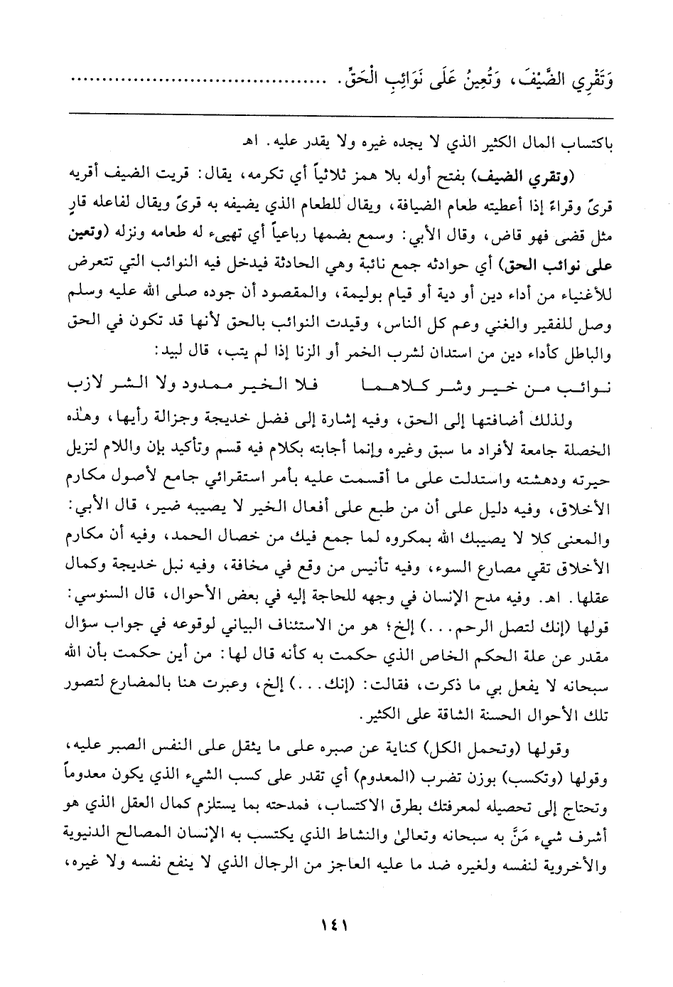 وَتَقْرِي الضَّيْفَ، وَتُعِينُ عَلَى نَوَائِبِ الْحَقِّ