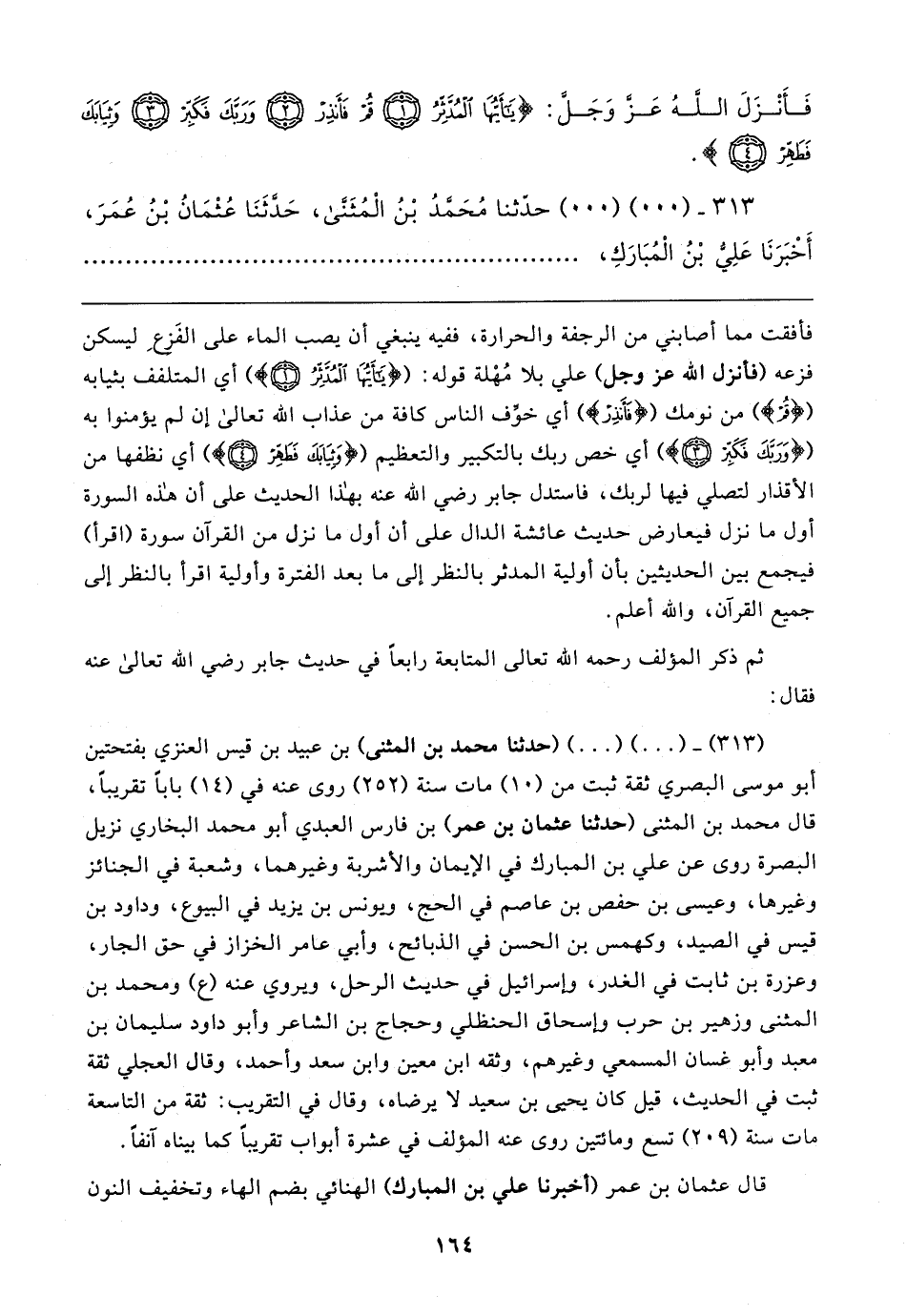 ٣١٣ - (٠٠) (٠٠) حدَّثنا مُحَمَّدُ بْنُ الْمُثَنَّي، حَدَّثَنَا عُثْمَانُ بْنُ عُمَرَ، أَخْبَرَنَا عَلِيُّ بْنُ الْمُبَارَكِ،