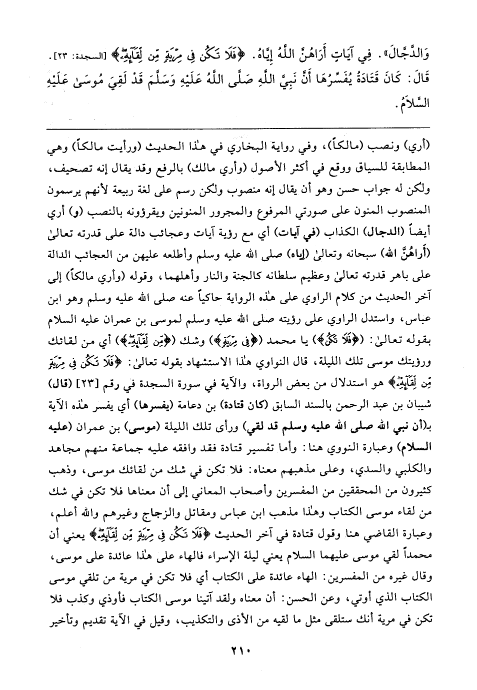 وَالدَّجَّال". فِي آيَاتِ أَرَاهُنَّ اللَّهُ إِيَّاهُ. {وَلَقَدْ آتَينَا مُوسَى الْكِتَابَ فَلَا تَكُنْ فِي مِرْيَةٍ مِنْ لِقَائِهِ} [السجدة: ٢٣].