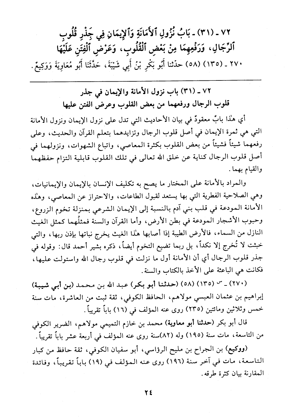 ٢٧٠ - (١٣٥) (٥٨) حدَّثنا أَبُو بَكْرِ بْنُ أَبِي شَيبَةَ، حَدَّثَنَا أَبُو مُعَاويَةَ وَوَكِيعٌ
